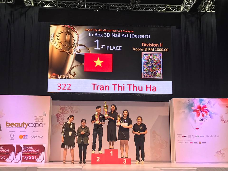 Phải qua nhiều năm rèn luyện cùng với kinh nghiệm tích lũy mà lần đầu tiên tại đấu trường Quốc Tế đã xướng tên Trần Thị Thu Hà – Nail Nhã Tường , cái tên Việt Nam đầu tiên dành vương miện toàn năng với hạng mục chuyên nghiệp. Đây quả là niềm tự hào đối với Nail Nhã Tường nói riêng và toàn thể Nail Việt Nam nói chung.